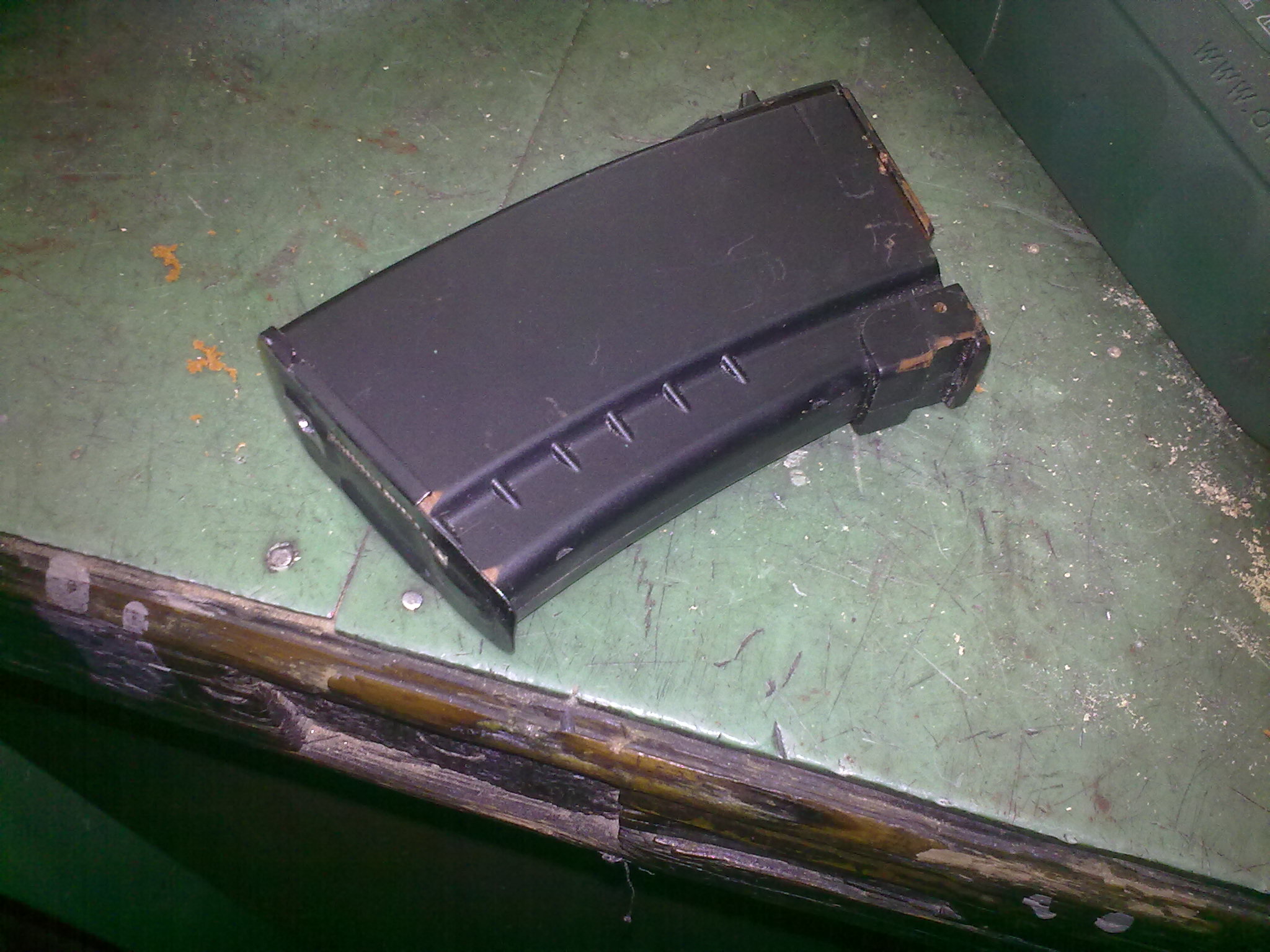 Tak tady je můj Made in Home Real-Cap zásobník na 15BB, reálná VSS ho má myslím na 10 nebo 20 nábojů, já mám něco mezi. Točák jsem předělal na tlačák  Příloha: