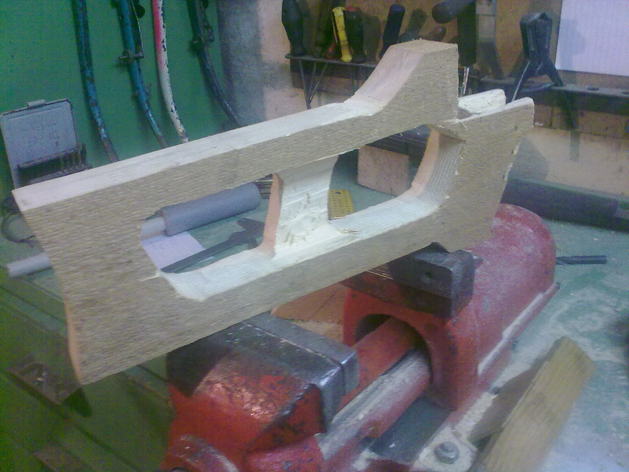 Tak tady je další postup, kompletně obroušená a vyrovnaná pažba s hotovou komorou pro motorek což bylo ze začátku docela oříšek. Příloha: