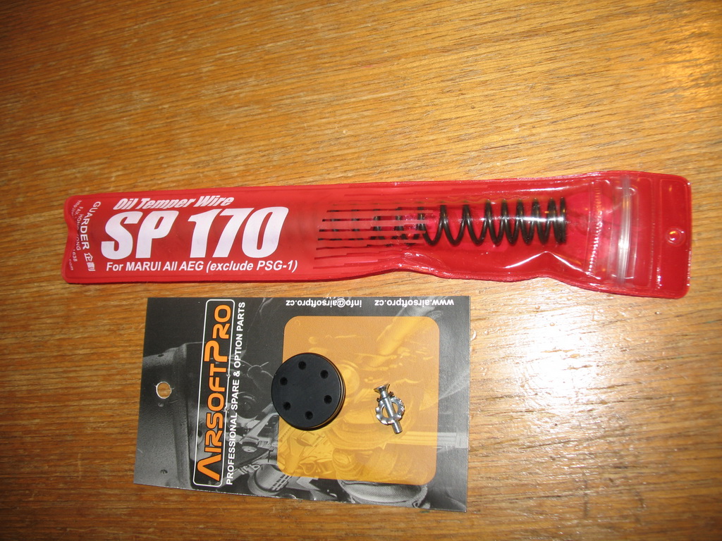 Tímto zahajuji projekt "Steyr AUG TM sniper" ...takže jsem koupil jednu pružiku od Guarderu a precizně vyrobenou Duralovou NBU hlavu pístu ASPro, na požádání v nekompletním balení(bez ložiska a podložky), přece nebudu kupovat to, co mám doma už 10x...Buďmě EKOLOGIČTÍ !!!