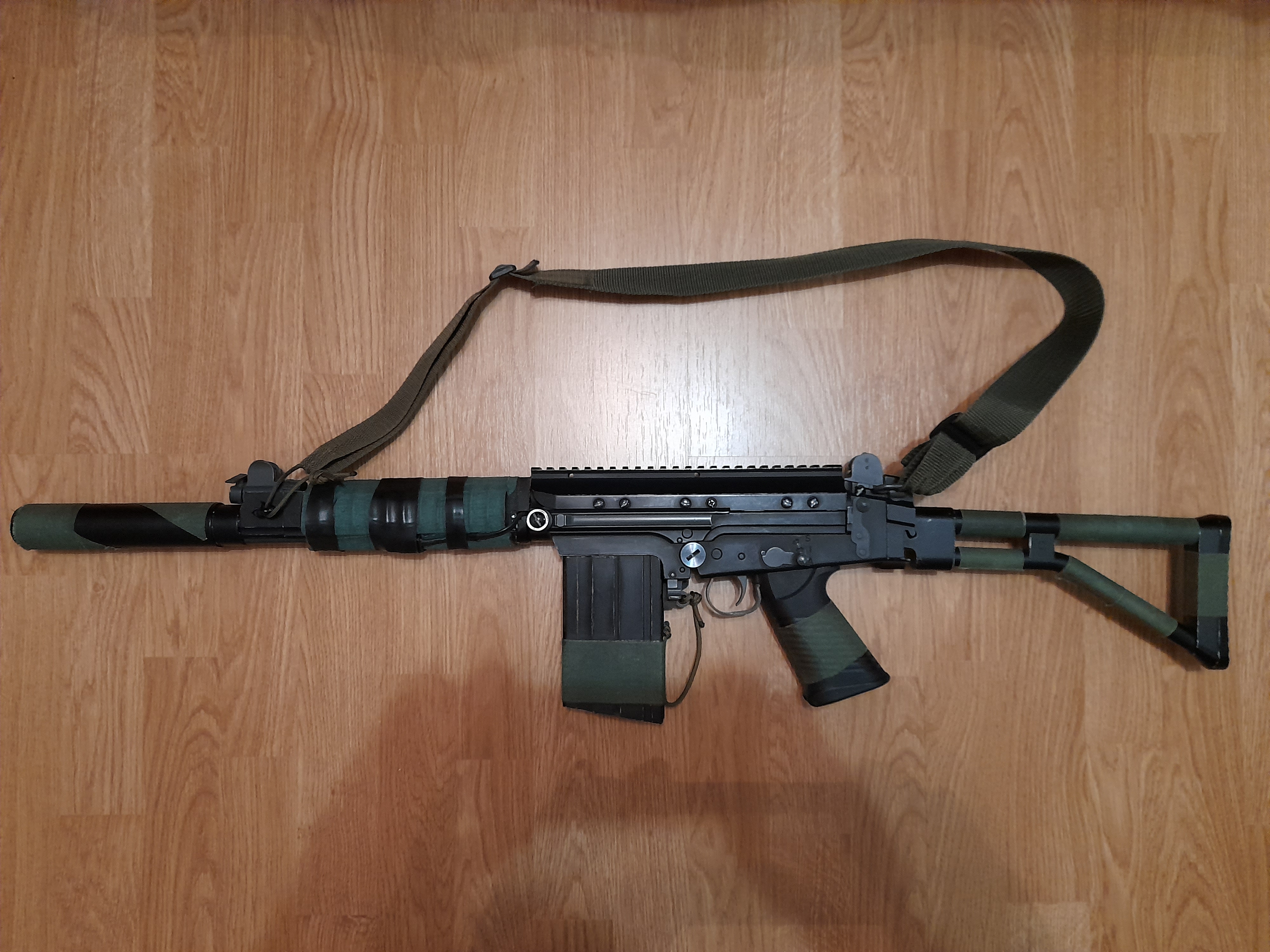 FN FAL OSW - ZL-2010ch Koupená od Morrise, původní RIS předpaží k tomu, kamufláž kobercovka.