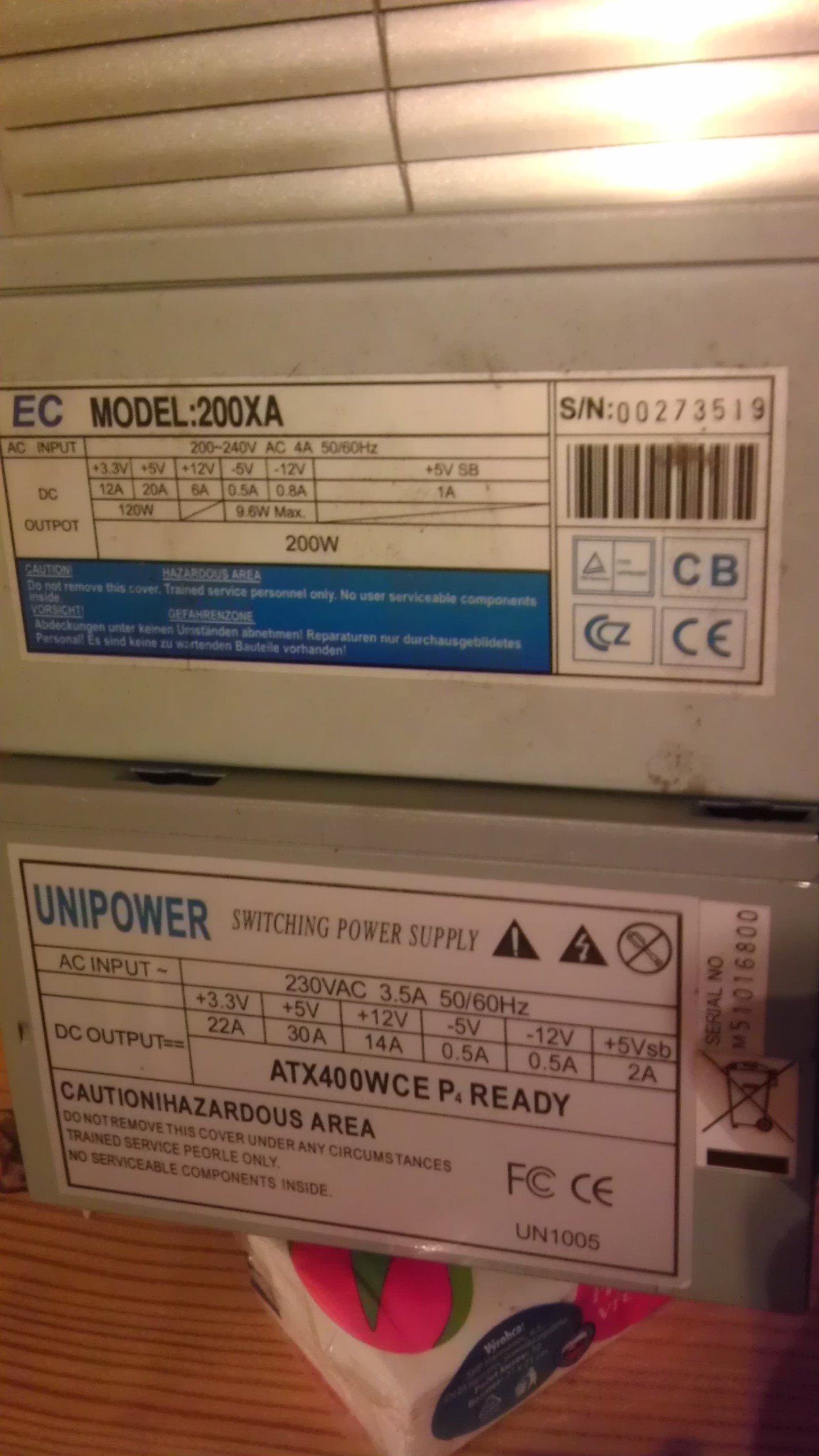 No hento som googlil doma na mojej milovanej povale som nasiel zdroje AT 200w a ATX 450w viz foto podla navodu som nane napojil hdd a prepojenim pinou som oba spustil ktory teda racej pouzit ?