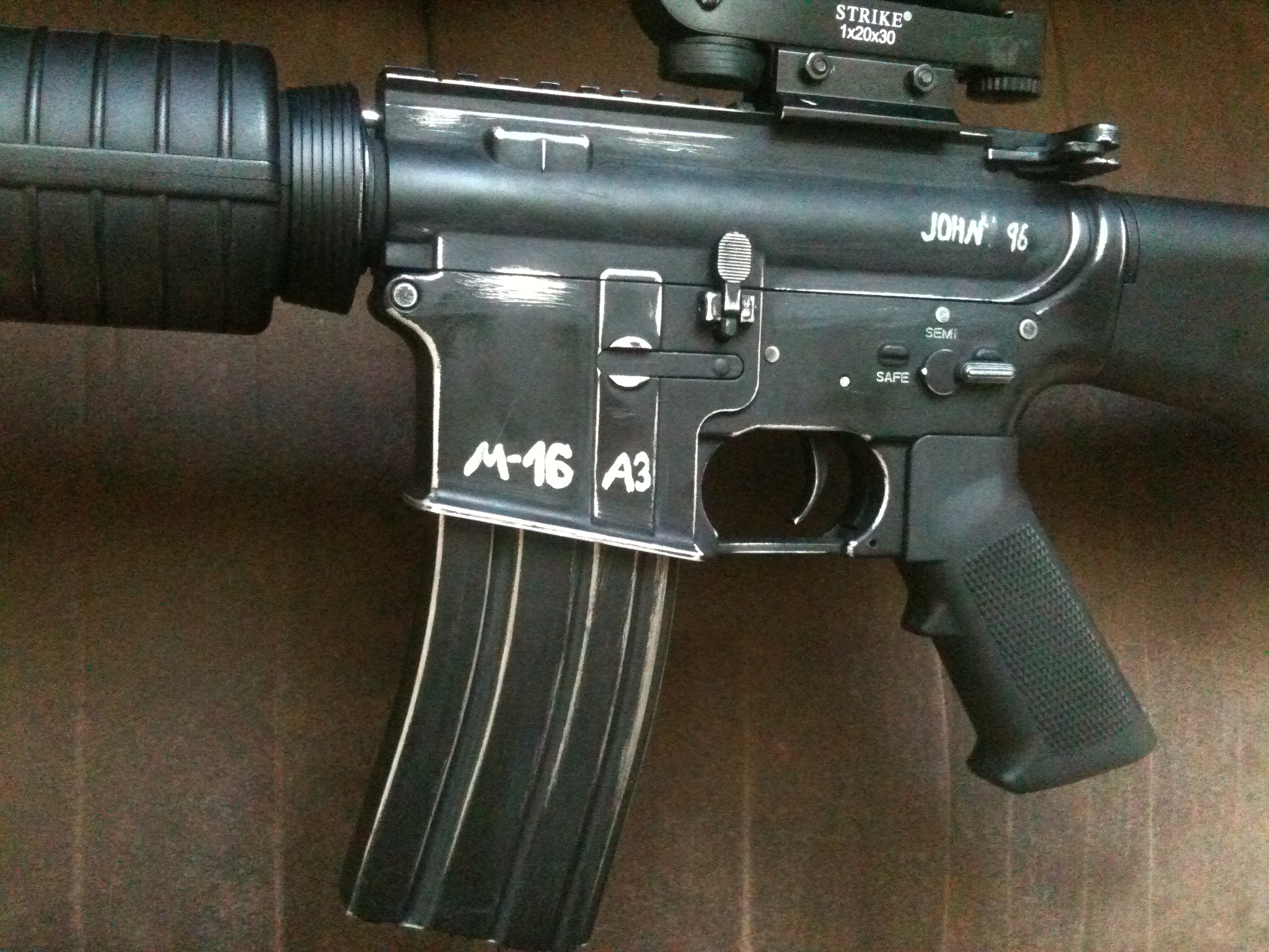 Tohle je moje zbraň, airsoft už moc nehraju, takže to mám jen tak na okuk. Uvnitř jsou různé kolečka, co se točí. Fotka by Reyes. https://scontent-b-sjc.xx.fbcdn.net/hph ... e=546F908F