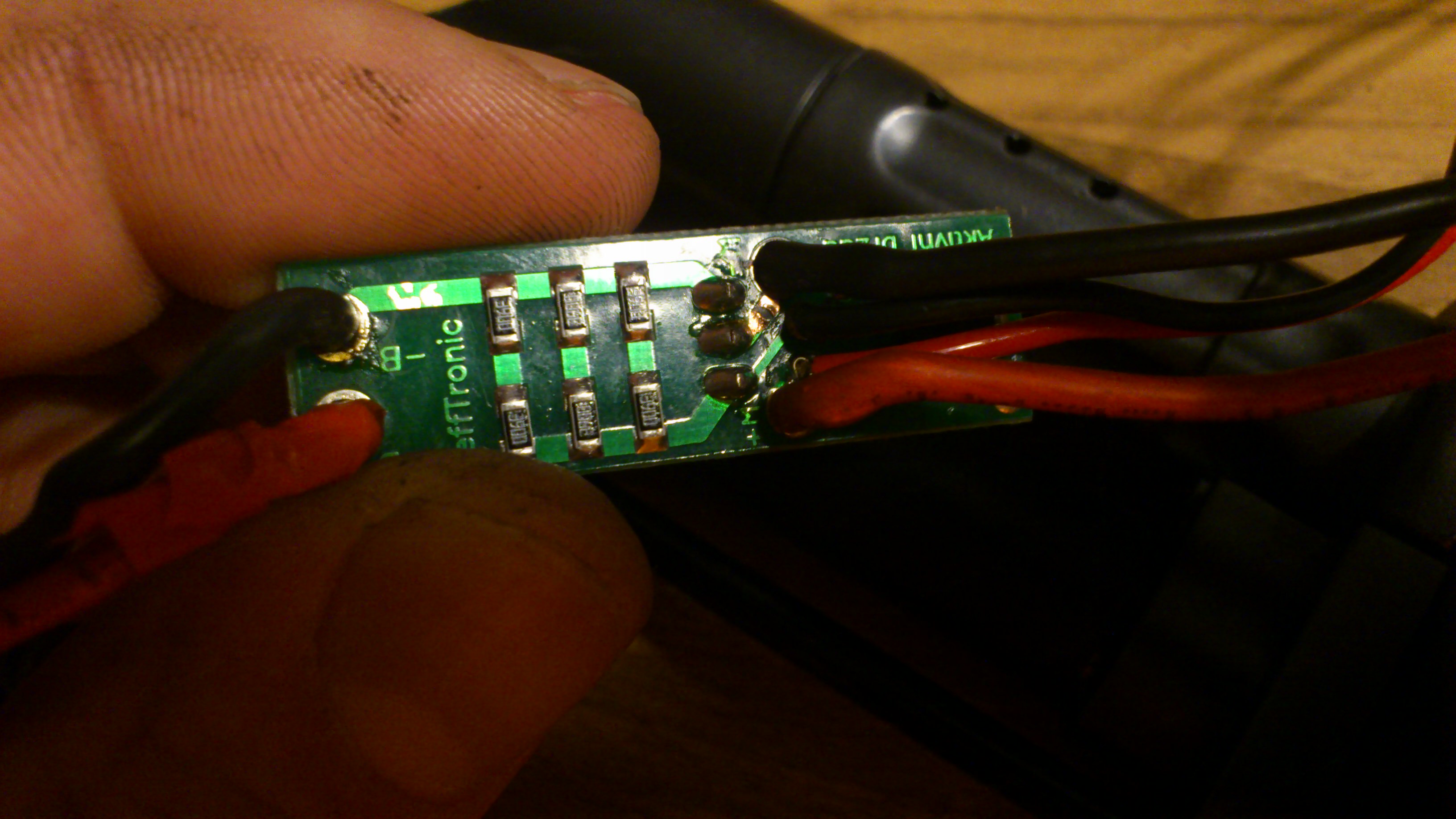 koukam, ze je na fotce brzda I. generace, tu jsem prestal nabizet ve variante bez kabelaze pred vice jak 1 rokem. V eshopu u ni bylo navic napsano, ze se nesmi pouzivat lipol baterie (proc asi  ). Zajimalo by me, s jakou baterii, pruzinou, kolach a motoru mas tuto brzdu provozovanou. Doprodavam jeste tyto brzdy pouze s univerzalni kabelazi, kde jsou tyto cesty posilene o dratove propojky, ale i tak zakazuji pouzivani 11.1V lipolek. Proto je i u tebe nejlepsi moznost pripajet na konce cest propojky z dratu 0,75qmm - 1,5qmm. Tj. cervene cery viz muj obrazek. Prave z duvodu nedostateneho dimenzovani cest pro lipol baterie jsem udelal pred rokem novou variantu zarizeni, ktere maji cesty min. 2x vetsi a tlustsi a tam neni jiz zadny problem.