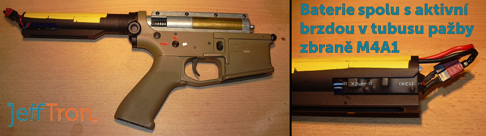 po odpojeni napajeni (uvolneni spouste) aktivni brzda zkratuje kontakty na motoru, cimz dojde na motoru indukci opacneho momentu a tak se motor pomoci vlastni energie rychle zastavi. Jsou tam navic pridany odpory pro prodlouzeni doby pro brzdeni, jinak by byl problem se zasekavajicim se mechanismem v AEG zbrani na semi strelbu, jsou mensi jiskry na komutatoru motoru a mensi proudove zatizeni aktivni brzdy. Snork86 píše: A druhá věc, má aktivní brzda nějaké nevýhody?? je mensi zivotnost motoru, protoze to vic jiskri na komutatoru behem brzdeni. Sam pouzivam ve svych zbranich aktivni brzdeni nekolik let a neni to nijak zasadni jev (motory jsem jeste nemusel menit).
