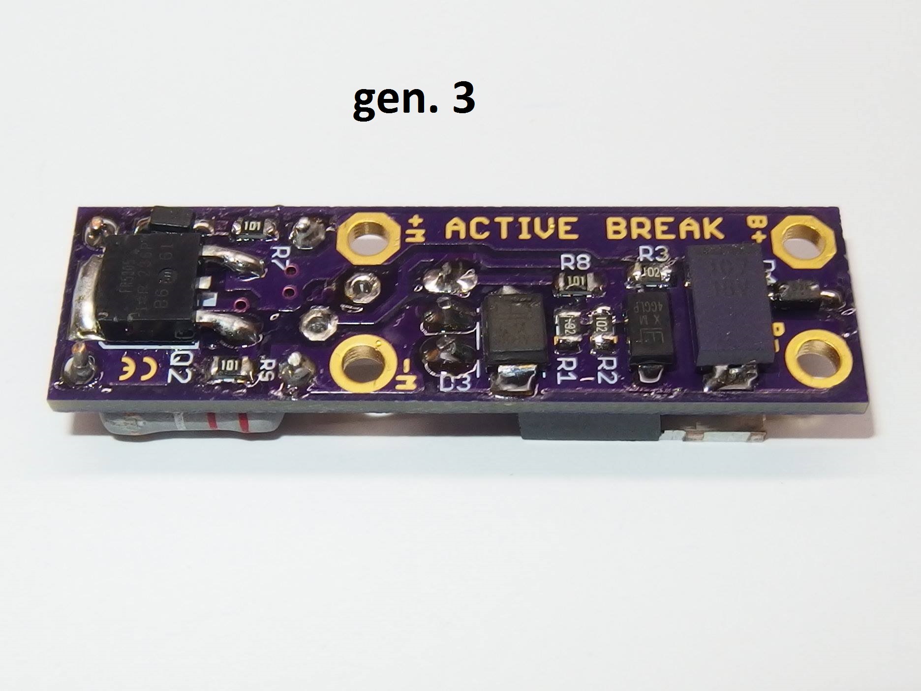 Přidány 2 součástky chránící zařízení proti poškození - Přidána stabilizace napětí aktivní brzdy sepnutí motoru. Eliminuje pokles napětí na baterii v zátěži, tím se extreme aktivní brzda spolehlivě a rychle spustí a tak se méně zahřívá. Z důvodu stabilizace napětí je nově signálový vodič oddělený od plusového potenciálu. 5-ti vodičové zapojení extreme aktivní brzdy je možné, ale tím bude tato funkce vypnutá. - Změněno řízení spínání aktivního brzdění, které je nyní spolehlivější a přesnější