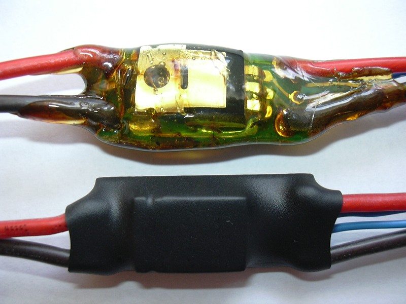 testovani technologie ochrany proti vode. - horni mosfet je zalit v plastu - spodni je zalit v laku a pretazen buzirkou