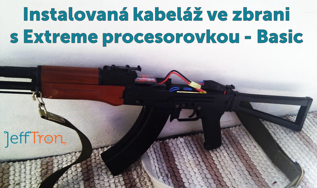 Na fotce je na zakázku vyrobená kabeláž s Extreme procesorovkou - Basic u zbraně AK74 s baterií v pažbě. Procesorovka je umístěná unitř zbraně nad mechaboxem. Sestavení kabeláže s procesorovkou je zdarma.