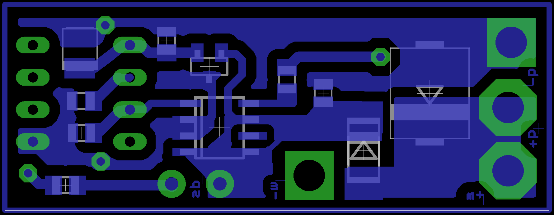 Chladič nalepený (pravděpodobně) se mi nezdá jako zrovna ideální řešení, mosfet není konstruován tak aby odváděl teplo na přední straně, tudíž chladič se jen tak nezahřeje. Pravděpodobně by bylo lepší použití lepšího SMD mosfetu nebo mosfet v TO220 (jako v aktivní brzdě, tak i ostatních mosfetech) s chladičem či bez. Toto je ale pouze můj osobní názor. Tak i tak ale procesorovka nemá absolutně žádné problémy s přehříváním. Žádný další mosfet na PCB nehledejte, žádný nenajdete, tato procesorovka nemá aktivní brzdu. S instalací vodičů na PCB by neměl být žádný problém, vše šlo jako po drátkách. Na plošném spoji dále najdeme gate driver od Texas Instrument řady TC 4XXX a mikroprocesor Atmel. Celý plošný spoj vypadá velmi kvalitně.