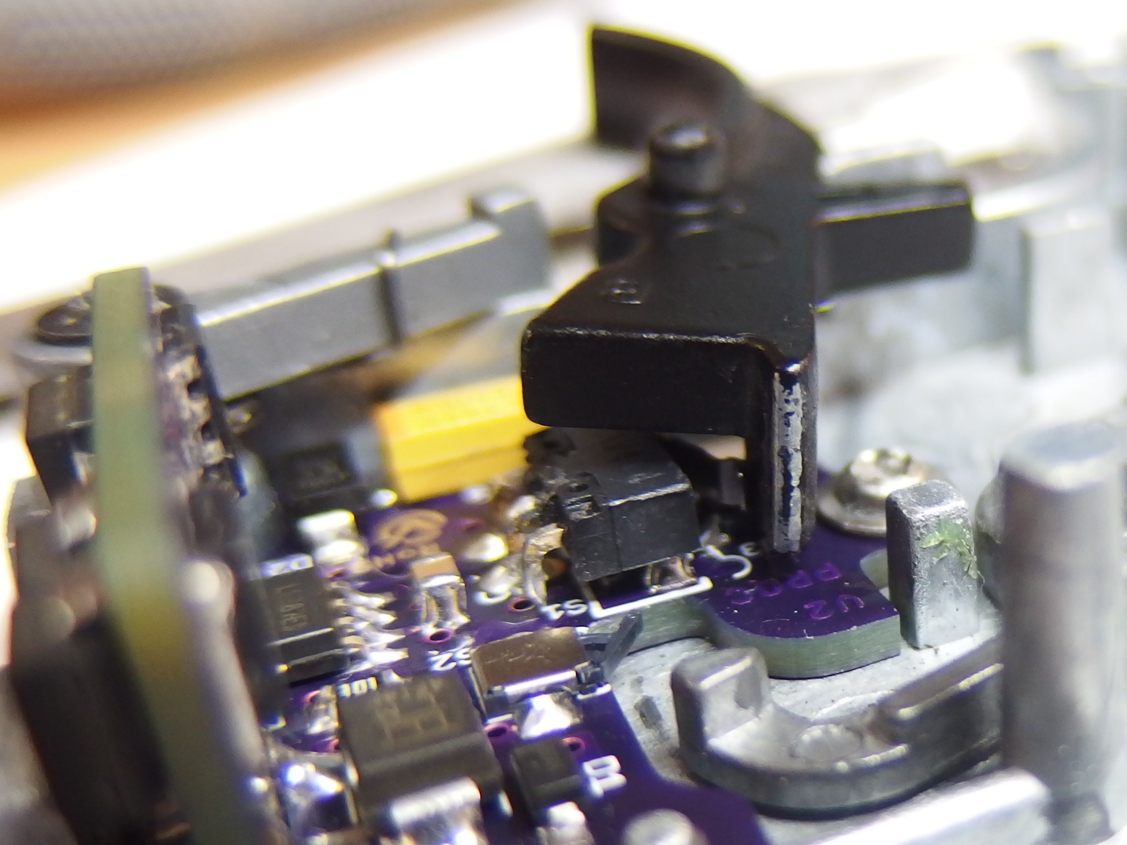 Zdá se mi, že mikrospínač je docela hodně posazený nízko. Tedy chtělo by ho to spíše osadit tak o 1mm až 1,5mm výše na desce. - Já osobně s tím mám velký problém u ASG mechaboxu s SHS přerušovačem - už jsme ho spiloval opravdu hodně a stále střílí na semi auto...