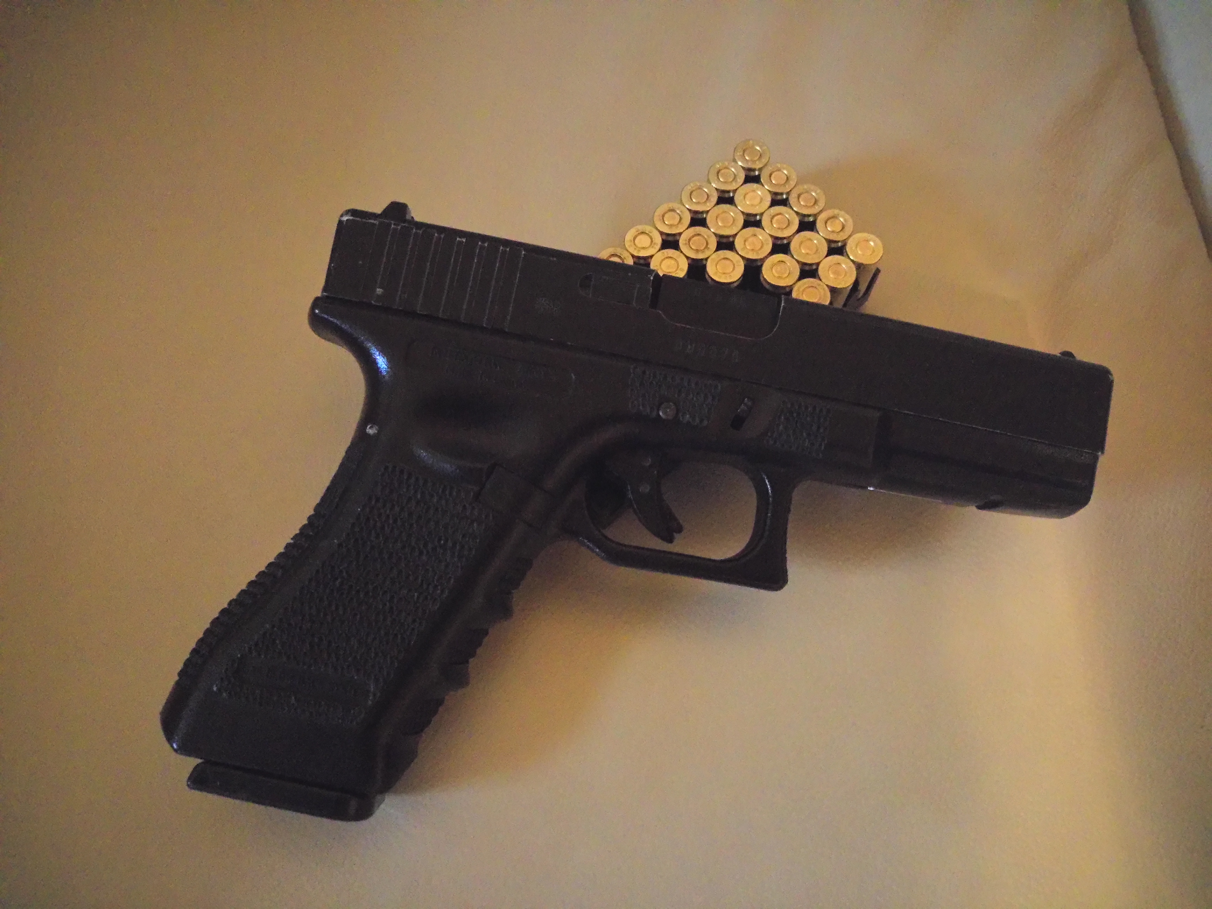 Tady je něco ode mne: TM Glock 17 Custom v základu. Pouzdro na zbraň i na zásobníky jsou od Uncle Mikes, vhodné mimo jiné i pro sportovní střelbu, protože poskytují dostatečnou mezeru mezi zbraní a tělem, což umožňuje dobrý úchop zbraně a její tasení narozdíl třeba od pouzder zn. Fobus, které jsou blíže k tělu a jsou lepší pro skryté nošení. Na zbrani chci v co nejbližší době udělat full upgrade.