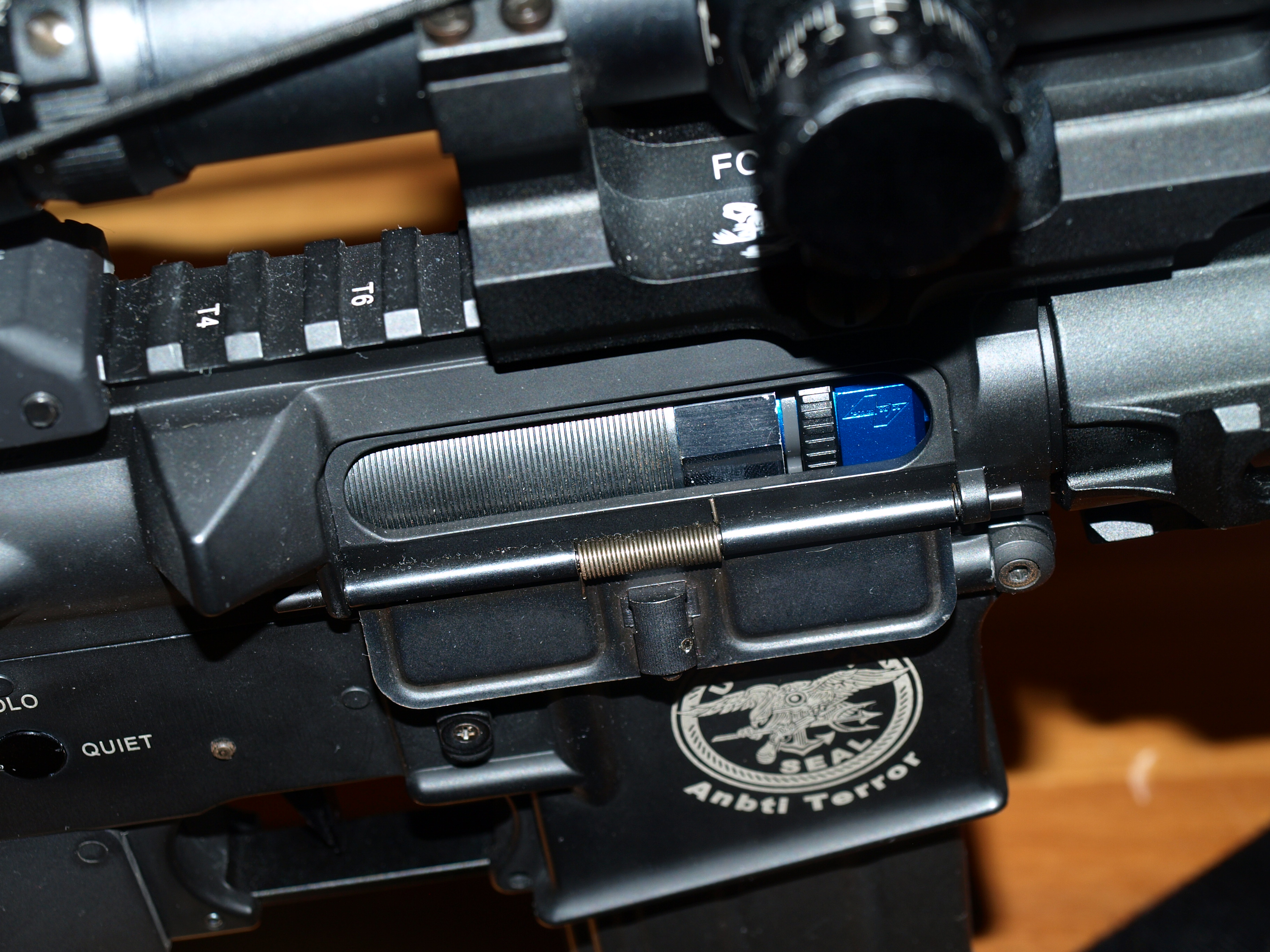 ZevnějšekProstě nádhera, žádný ring mezi tělem a předpažbím (ty kroužky přímo nenávidím). Tělo je velice pevné (na lower i upper receivru drží magnet takže to nebude slitina) a absolutně nic se kromě pažby v základu nekývá (ale zde stačí dotáhnout šroub). A zde se dostáváme k vůbec největšímu problému této zbraně, kompartment baterie. Je v atypické pažbě kam se vejde jen tyčová baterie NIHM, žádnou tyčovou li-pol se slušným výkonem jsem tam nedostal. Jediné co se tam vlezlo je procesorovka, ale navzdory tomu velice kvalitní zpracování.