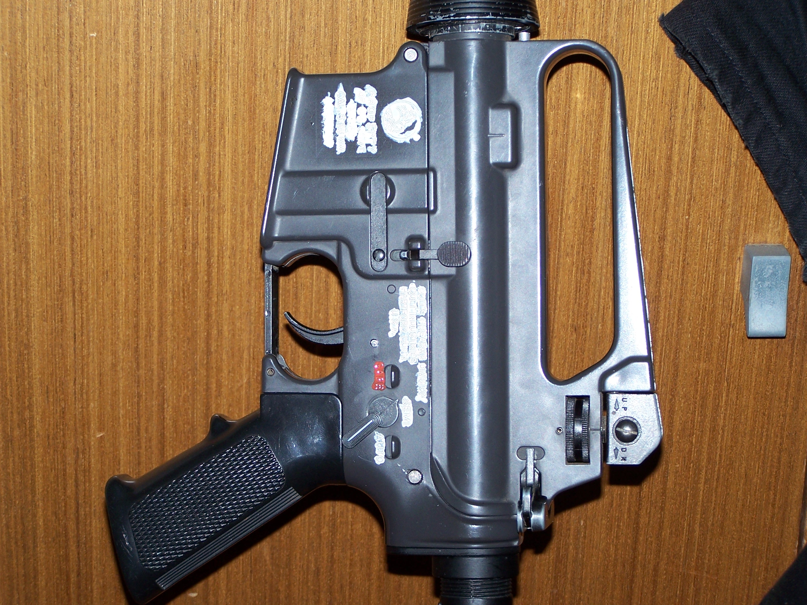 Tím je hotovo a můžete se kochat pěkně zvýrazněnými napisy na vaší zbrani... Na závěr pár foto mojí M4.