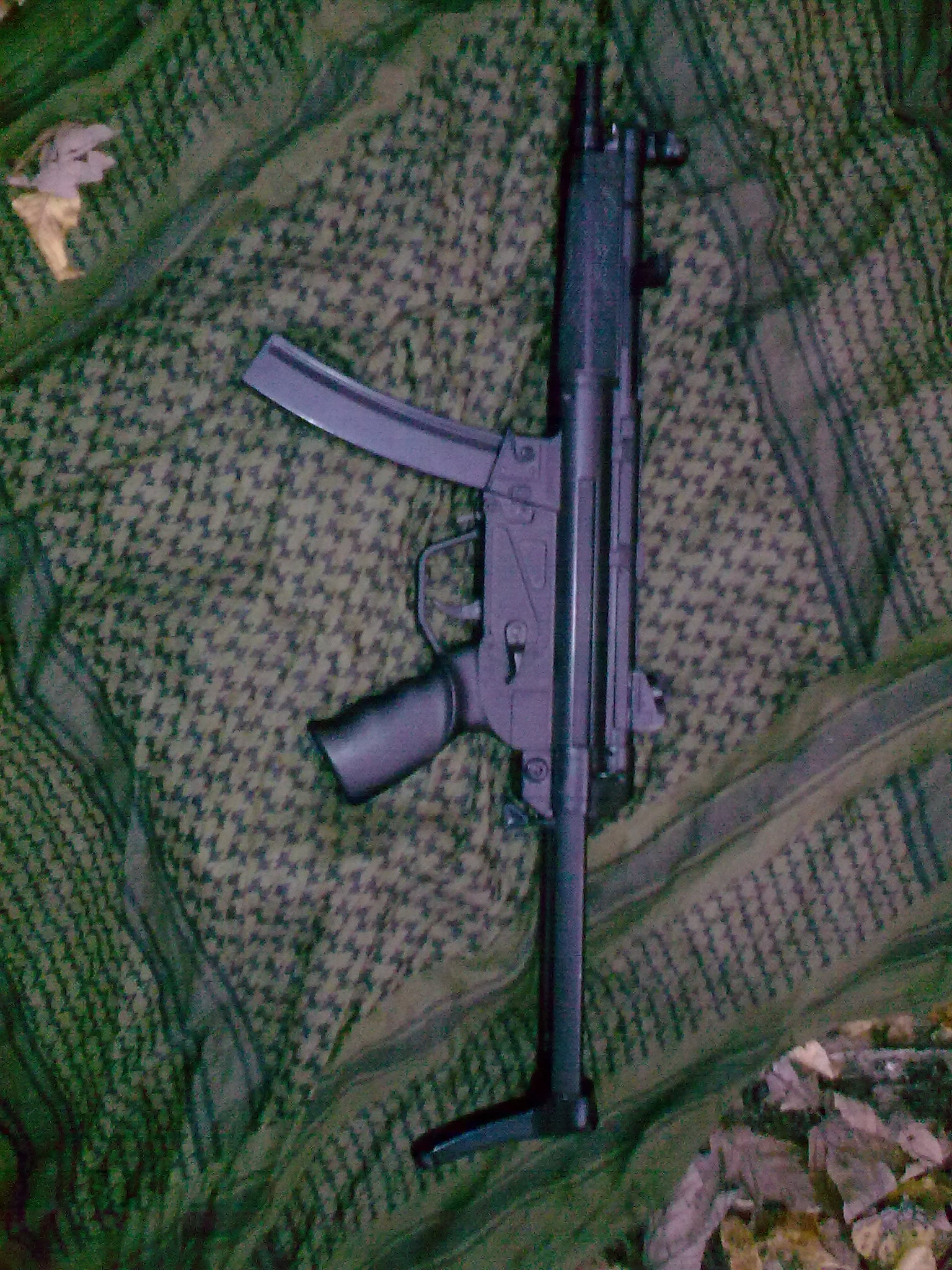 Další upgrade(jak pro koho) je odmontování kolíku(je to taková pružinka a kolík, ale jde to zase přidělat) , co drží pažbu ve zbrani tak, aby nešla vytáhnout,když je mezi dvěma polohami-zasunuto, vysunuto. Pažbu jde zafixovat zasunutou nebo vysunutou. Jinak jde vytáhnout. Výhoda tohoto upgradu je, že máte MP5 s pažbou, která jde nosit buď zasunutá, nebo vysunutá. Hlavně ale jde oddělat.Kdykoliv, kdekoliv, snadno odděláte a přiděláte. Oddělání pažby používám v případě CQB a hlavně při boji na metr. Ta MP5 je totiž tak „dobře“ navrhnutá, že pro člověka , co má větší ruce není držení zbraně se zasunutou pažbou moc pohodlné, téměř nemožné. Bez pažby ale není možné střílet efektivně a přesně rychlopalbu(natahuju a mačkám rychle spoušť, mířím podle toho, kam dopadají kuličky), ale zase nemusíte vystrkovat celou ruku a v budově, nebo v malém prostoru se s ní lépe manévruje. S pažbou je to zase lepší na delší vzdálenosti. To pak se zbraní jde střílet podle dopadajících kuliček a hlavně se nemusí tolik mířit. Jakmile se naučíte mířit celou zbraní, máte vyhráno. Samozřejmě, že s pažbou se zvedne i přesnost rychlopalby. Nejlepší je našroubovat si tam sklopnou pažbu z MP5 PDW nebo MP5A5, k čemu se časem dopracuji.